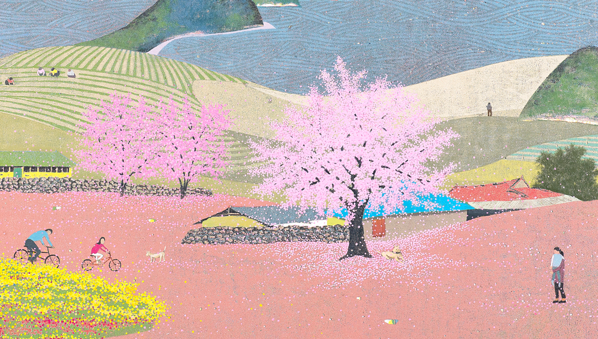 박구환 작가의 캔버스 위에는 남도 바다의 윤슬, 만개한 목련과 매화, 나지막한 집들이 옹기종기 모인 섬마을 풍경이 흐릅니다. 하지만 이것은 단순한 재현이 아닙니다. 작가는 자신이 직접 발 딛고 숨 쉬었던 기억의 파편들을 꺼내어, 우리 모두가 그리워하는 '원형적인 고향'의 풍경으로 재구성합니다.
