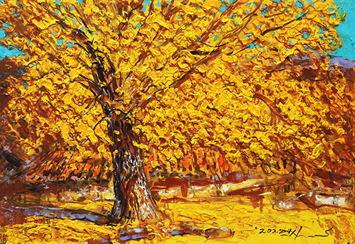 은행나무집, 116.8×80.3㎝, Oil on canvas, 2024, 이상열