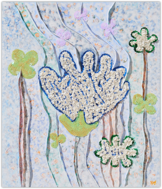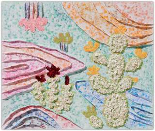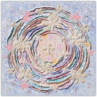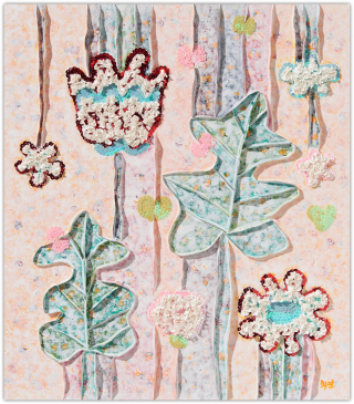 작가는 과거와 현재, 미래가 뒤섞인 유희의 시간을 파스텔 색조로 채색하며, 그 위에 물감을 입체적으로 쌓아 올려 손에 잡힐 듯 생생한 꿈의 조각들을 만들어냅니다.