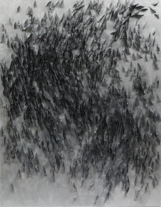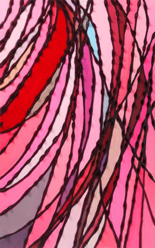 ‘FLOW’시리즈는 스킨스쿠버의 메카 제주문섬 바다를 모티브로 합니다. 10여 년 전 작가는 스쿠버다이빙을 통해 에메랄드 바닷빛 물고기 무리의 신비로운 생명력을 체험합니다. 떼지어 움직이는 물고기, 그 위로 스며든 햇빛, 일순간 휘몰아치는 물살의 역동성은 미지의 바닷속을 걷는 듯 신비합니다. 핑크‘FLOW’는 바다를 물들인 듯한 핑크산호가 모티브입니다. 작품의 다양한 핑크색은 수많은 레이어를 쌓아 완성되었고 자유분방한 선들은 물고기의 힘찬 flow입니다