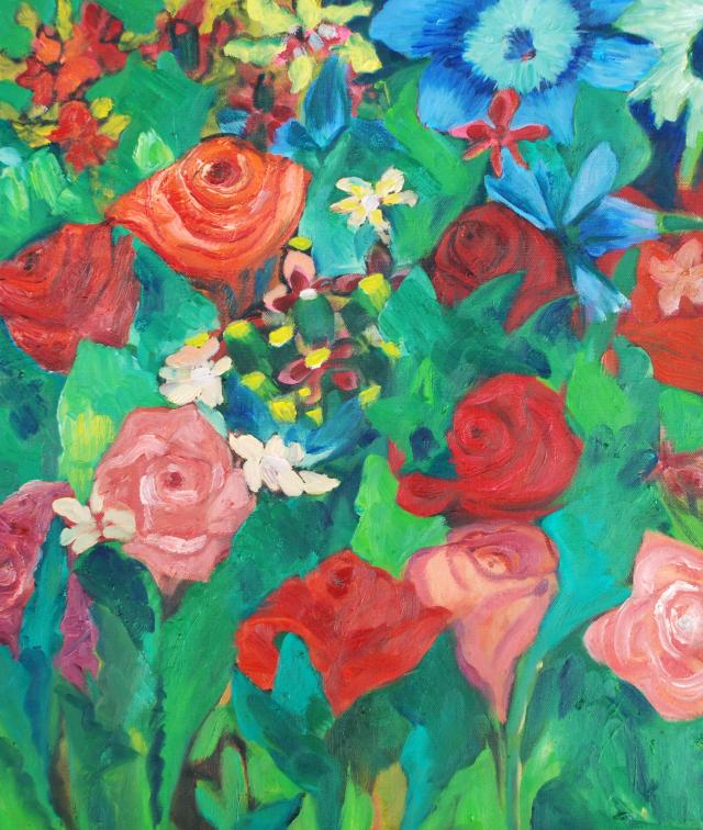 마음을 읽는 작가 김애옥은 왠지 마음이 우울하거나 기운이 없을 때 작가의 꽃그림을 바라보면, 따뜻해짐을 느낄 수 있다. 꽃들의 얼굴과 다양한 색들은 마음을 바라보며 함께 마음을 나누자고 속삭인다. 꽃들과 함께 꽁꽁 숨겨 놓은 우리들의 감정도 살펴보고, 지금 이 순간 나에게 필요한 애정과 에너지는 무엇인지 발견하기를 바라는 작가는 또한, 내안에 있는 또 다른 내면의 순수한 아이를 찾아 자기 스스로 용기를 얻고 힘들었던 이야기를 고백할 수 있기를 원한다.