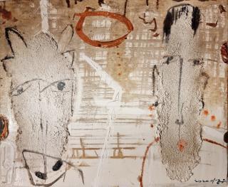 “유년시절 나는 항상 시골언덕 위에서 풀을 뜯고 있는 소와 겹쳐진다. 꼴을 베다 잠시 쉴 때도, 엄마가 그리워 나무 아래에 앉아 남몰래 눈물을 훔칠 때도 소는 내 옆에 있었다. 이처럼 소는 고향에 대한 그리움이고 마음의 위안을 주는 친구였기에 다양한 모습으로 소를 시각화하여 사람과 공존하며 평화롭게 살아가는 모습을 그리고 싶었다. 작품은 흙벽을 재현하여 어떤 삶의 흔적과 순수한 세계가 그대로 옮겨진 것 같이 표현하였다.”