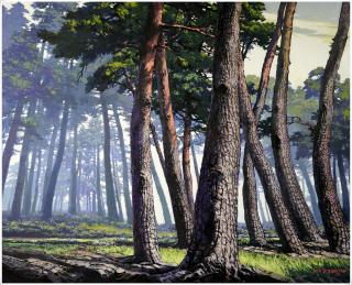 인간의 삶을 반추하는 박정기 작가의 소나무는 한국의 상징적인 나무로서 엄동설한에서도 푸른 생명력으로 유지하는 속성 때문에 옛사람들은 소나무를 어떤 역경에도 굴하지 않는 굳은 기상과 절개의 상징으로 여겼고, 강한 생명력으로 무병장수를 기원하는 ‘십장생도’의 소재로 자주 표현해왔다. 작품 속 소나무의 외양은 서양 회화의 전통인 아카데미즘에 기반한 사실적인 이미지이지만, 내면은 동양 회화의 전통에 기반해 이루어져 동·서 회화의 융합적 예술을 보여주고 있다.