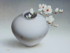 박철환 작가는 '리얼리티의 진수'를 보여주는 중견작가로, 백목련과 달항아리가 주 소재이며, 달항아리의 빙렬(유약 표면의 갈라진 틈)까지 극한의 세밀함과 절제미를 보여줍니다. 절묘하게 굽은 목련 가지는 힘 있는 필획 느낌을 주며, 추상적으로 처리된 배경은 동양화의 여백 같은 깊이감을 자아냅니다. 작가는 국내외에 미국,일본,중국,홍콩 등지에서 50여회 이상 전시하였으며, 제네바, 마이애미, 뉴욕 아트페어 등 세계적 무대에서 한국구상미술의 저력을 알려왔습니다