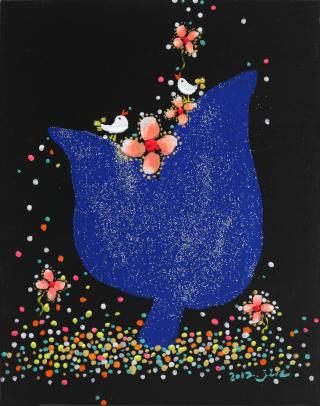 작가 오진은 사랑에 흠뻑 젖은 생명의 노래를 그림으로 풀어냅니다. 화폭엔 우리의 빈 마음을 채워줄 만한 넉넉한 공간이 있으며, 생명의 신비가 느껴지는 그곳엔 가을 봄 여름을 가리지 않고 언제나 꽃이 피며, 얼어붙었던 땅이 풀리어 풀싹이 돋아나고 있습니다. 우리에게 늘 선물처럼 다가오는 날들, 자연의 숨소리에 숨겨진 따뜻한 사랑을 그리며, 마치 동심으로 빠져들듯 멋진 기쁨의 향연과 지금 순간 무척이나 행복해질 것만 같은 애절한 감동이 밀려오게 합니다.