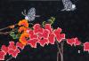 작가는 능소화와 나비를 전통채색방식에 현대적인 조형성으로 표현하여 사랑, 만남, 이별의 여정을 펼칩니다. 능소화는 사랑을 이루지 못한 여인이 상대에 대한 그리움으로 붉게 피어났다는 설화를 가지고 있는데 작품에서도 능소화는 아주 화려하고 만개한 모습으로 등장하고 있어 슬픈 감정을 던져 줍니다. 다양한 색채로 드러나는 나비들은 서로 만나 교감하는 장면과 흩어져서 이별하는 장면으로 묘사되어 삶과 사랑에 대한 작가의 진지한 탐색이 드러납니다.