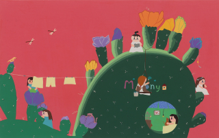 작가는 어린시절에 만든 캐릭터 무니(Moony)를 재구성하여 세상을 살아가는 우리를 표현합니다. 코로나팬더믹으로 자유를 통제받는 우리를 대신해 코로나가 없는 평화로운 바닷속에서 새 삶을 사는 무니들, 멋진 퍼포먼스와 완벽한 가창력으로 대중을 사로잡는 슈퍼밴드가 되어 우리의 꿈을 대신 이루어 주는 무니들. 작가는 다양한 모습을 보여주는 귀여운 무니를 통해 각박한 세상 속 우리에게 행복을 선물합니다.