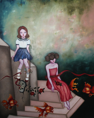 작품 속 주인공은 꼬마 소녀부터 성숙한 여인까지 다양한 나이대로 표현된 작가 자신의 모습입니다. 작가는 어릴 적 기억에서 이끌어낸 자아를 이미지화하고 현재시점의 생각과 감정을 가미합니다. 추억이 깃든 사진첩을 꺼내보면서 잊었던 과거의 추억을 회상하거나, 잠재의식 속에 있는 자아를 작품 속으로 끌어내어 초현실적인 요소들도 등장시킵니다. 두 소녀가 등장하는 작품은 과거와 현재의 자아가 조우하거나 주관적 자아가 타자화된 자아를 바라보는 모습입니다.