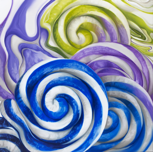 작품의 소재인 ‘캔디’는 우리에게 풍요와 행복의 은유적 오브제입니다. 캔디가 없더라도 우리의 삶의 질은 크게 바뀌지 않지만 그런 상징을 갖기에 행복과 여유, 풍족함이나 달콤함 등 필수조건 이상의 감정을 불러옵니다. 작가는 일상에서 느낀 색채를 조합하여 캔디를 사실적으로 표현합니다. 마치 캔디라는 캔버스에 방사형 스트라이프 추상회화작업을 하는 느낌으로 색을 조합합니다. 작품제목은 작업할 때, 날씨에 영감을 받거나 일상 혹은 꿈에서 영감을 받은 요소들입니다
