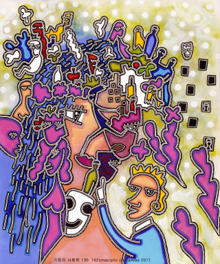 유정훈 작가의 그림은 남녀노소,나이불문 재미있는 그림이다. 그림의 소재는 그냥 사람들의 이야기, 일상을 그려내는데 그 표현방식에 있어 남들과는 다른 유정훈만의 따뜻함으로 그려낸다. 작가는 그림을 통해 과거와 현재를 오가고, 기억과 미래를 변주하는데 그 속을 들여다보면 누구에게나 있을 법한 이야기이다. 생기넘치는 색감 아래 희노애락을 나타내는 형상들이 배치되어 있는데 작가는 밝고 영롱한 캐릭터로서 표현해낸다.