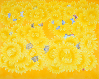 자연이 전해주는 끝없는 생명력과 그 내적인 교감을 통한 정신적 미감의 표출은 어쩌면 동서양 회화예술의 영원한 화두일지 모른다. 작가는 주요 모티브가 산과 꽃, 나비 같은 자연의 서정적 요소를 중점적으로 표현하였다. 내면에 존재하는 사색적 의미를 강조하고자 여러 번 덧칠해 쌓아올린 분채와 석채위 절제된 색조와 부드러운 필치의 선묘를 반복적으로 사용하였으며, 여기에 인상파의 점묘양식을 차용함으로써 보다 더 다양하고 생동감 넘치는 화면을 보여주기도 한다.
