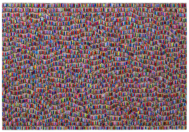 김소형 작가는 캔버스 빼곡히 시그니처인 인간 군상을 넣은 작업을 통해 '행복론'을 이야기합니다. 작품은 마치 패턴으로 표현한 추상화처럼 보이지만 가까이서 보면 각기 다른 각양각색의 사람들이 채워져 있으며, 캔버스에 물감 덩어리를 짜내어 붙이는 작업방식 때문에 한 작품의 완성에 수개월까지 걸리기도 하지만, 이제 작가의 인기 시그니처가 되었습니다. 작가는 '사람들은 혼자서는 살 수 없고, 함께할 때 진정한 행복을 느낀다'며 작품이 위로가 되기를 희망합니다.