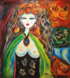 한국 근대회화의 거목 도상봉 화백의 딸인 도문희 화백의 화려하고 열정적인 여인 유화입니다.