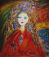 한국 근대회화의 거목 도상봉 화백의 딸인 도문희 화백의 화려하고 열정적인 여인 유화입니다.