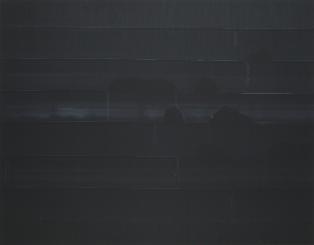작품은 물길의 우연한 번짐이 핵심요소입니다. 물은 자연스레 높은 곳에서 낮은 데로 흐르고 흰색의 농도와 물의 양에 따라 물길의 표정은 다릅니다. 작가는 붓을 통해 물길을 인도하고, 흐르는 물길에 마음을 싣습니다. 영원할 것 같은 인생도 금방 말라버리는 물방울처럼 허무하지만 숱한 사람들이 자연에서 나고 졌음을 생각하면 세상이 얼마나 아름답고 고마운가. 작가는 사람들이 작품을 통해 자연 속에서 사람의 길을 찾는 사색의 시간을 갖길 원합니다.