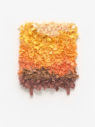 천이 잇대어 붙어서 색 면을 만들고 그 작은 조각들이 모종의 형상을 짓고 있다. 아니 구체적인 대상을 재현한 것은 아니고 다만 분위기, 느낌을 시각화하고 있다는 인상이다. 그렇다고 추상이라고 부르기에는 망설여진다. 왜냐하면 화면은 여전히 그 무엇인가를 연상시켜주는 편이다. 외계와 단절된 세계가 아니라는 얘기다. 작가는 <봄길>, <여름산책> <따스한 겨울밤>, <바람소리>처럼 사계절의 자연풍경, 그리고 자연현상을 상징적으로 표현하는가 하면 <한숨>, <희미한 유년풍경>, <뜨거운 눈물>과 같은 제목은 다분히 개인적인 체험과 감정, 내면을 반영하는 편이다. 그리고 이 두 가지 관점은 동일한 형식, 방법론 아래 조율되어 풀린다. 작가는 앞서 언급한 관심사를 우선 색채로 환원하고 있다. 색으로 물들이면서 기억, 인상을 시각화한다. 그 색을 받아주는, 색이 자리하는 장소는 천이다. 면과 견사가 주로 사용되고 그 천은 자신의 감각에 의해 적셔진 색상으로 가득하다. 그 천을 자르고 잇고 부착해서 화면에 '풍경'을 만들어가는 것이다. 서사적인 색채추상을, 색으로 물든 천으로 구성해나가는 염색작업을 보여주는 것이다.