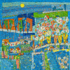 행복 가득한 감성을 전하는 김경이 작가. 작가의 모든 그림에는 희망과 용기를 뜻하는 태양을 그려 넣었으며, 감성을 가득 채우고 싶었던지 작가는 질퍽한 덧칠 기법으로 깊은 감흥을 주었으며, 정겨운 마을과 뒷동산의 모습은 정감어린 어린시절을 느끼게 합니다. “마을을 그려도 따뜻하게 그리고 싶어요. 제 그림에는 늘 미루나무가 등장하는데요. 어렸을 때 제가 그 나무 아래서 소망을 키웠기 때문에 제 그림을 보시는 분들도 희망을 느끼길 바래요.”