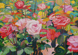 '흐르는 산'을 그리는 김윤숙 작가는 눈에 보여지기 위한 것이 아닌 내면의 세계를 표출해내며 산의 포근함과 신비로움을 화폭에 담아내고 있다. 작품은 단순화되거나 다양한 색채와 압축된 이미지로 변형, 재해석하고 있다. 물감에 돌가루가 섞여 중첩되고 두터워지는 것은 산에 대한 즐거움과 반가움, 경외하는 마음이 녹아 들어가는 과정이다. '거대하고 위대한 자연. 언제든 가기만 하면 품어주고 위로해주며 멀리서도 항상 손짓하는 산. 나에게는 영원한 예술의 화두다.
