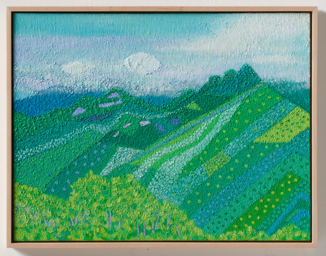 '흐르는 산'을 그리는 김윤숙 작가는 눈에 보여지기 위한 것이 아닌 내면의 세계를 표출해내며 산의 포근함과 신비로움을 화폭에 담아내고 있다. 작품은 단순화되거나 다양한 색채와 압축된 이미지로 변형, 재해석하고 있다. 물감에 돌가루가 섞여 중첩되고 두터워지는 것은 산에 대한 즐거움과 반가움, 경외하는 마음이 녹아 들어가는 과정이다. '거대하고 위대한 자연. 언제든 가기만 하면 품어주고 위로해주며 멀리서도 항상 손짓하는 산. 나에게는 영원한 예술의 화두다.