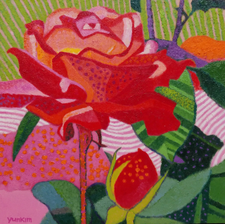 '흐르는 산'을 그리는 김윤숙 작가는 눈에 보여지기 위한 것이 아닌 내면의 세계를 표출해내며 산의 포근함과 신비로움을 화폭에 담아내고 있다. 작품은 단순화되거나 다양한 색채와 압축된 이미지로 변형, 재해석하고 있다. 물감에 돌가루가 섞여 중첩되고 두터워지는 것은 산에 대한 즐거움과 반가움, 경외하는 마음이 녹아 들어가는 과정이다. '거대하고 위대한 자연. 언제든 가기만 하면 품어주고 위로해주며 멀리서도 항상 손짓하는 산. 나에게는 영원한 예술의 화두다.