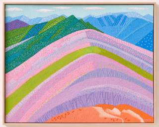 '흐르는 산'을 그리는 김윤숙 작가는 눈에 보여지기 위한 것이 아닌 내면의 세계를 표출해내며 산의 포근함과 신비로움을 화폭에 담아내고 있다. 작품은 단순화되거나 다양한 색채와 압축된 이미지로 변형, 재해석하고 있다. 물감에 돌가루가 섞여 중첩되고 두터워지는 것은 산에 대한 즐거움과 반가움, 경외하는 마음이 녹아 들어가는 과정이다. '거대하고 위대한 자연. 언제든 가기만 하면 품어주고 위로해주며 멀리서도 항상 손짓하는 산. 나에게는 영원한 예술의 화두다.