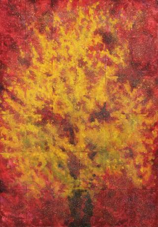 작가의 작품은 그동안 자연의 터를 만들었고 다음으로 자연이 꽃(그러므로 생명력) 피울 순서이다. 이처럼 자연에 핀 꽃을 표현하기 위해 색채를 준비하며, 드리핑(흩뿌리기) 기법을 도입한다. 작가는 모티브 하나하나를 그리는 대신, 자유자재로 흐르는, 분방하고 유기적인, 자연의 무분별한 생명력의 분출을 표현한다. 그대로 화면 속으로 걸어 들어간 잭슨 폴록처럼 자연 속으로 걸어 들어갔다고 해도 좋고, 그렇게 자연에 동화되고 자연과의 혼연일체가 지향되고 있다.