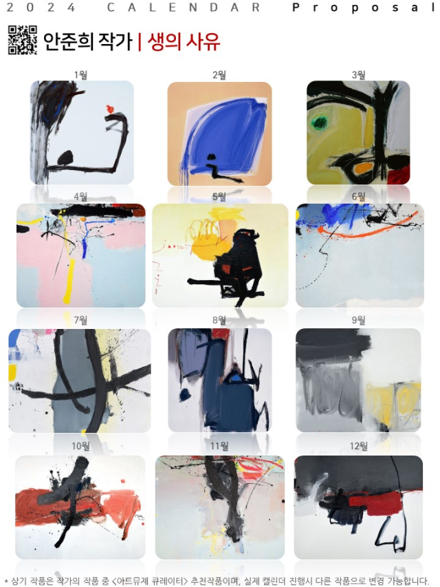 화가의 그림을 캘린더 안에 넣어보시길 추천드립니다.(추가 연간구성은 별도 제안 가능해요)
