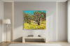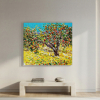 이 작품은 다채로운 색감과 강렬한 붓 터치로 가득한 과수원의 풍경을 담고 있습니다. 그림의 중심에는 탐스러운 과일이 매달린 나무가 자리 잡고 있으며, 나무 주변의 초록색 잎과 노란 들판, 그리고 파란 하늘이 조화롭게 어우러져 생동감 넘치는 자연의 에너지를 표현합니다. 작가는 두꺼운 물감과 질감을 활용해 과일의 풍성함과 자연의 활기를 강조했으며, 화려한 색채와 역동적인 붓 터치를 통해 화면에 생동감을 더했습니다.