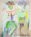 정형화된 미(美)를 거부하는 이명순 작가는 '어글리 아트(Ugly Art)'적 요소와 결합된 '아웃사이더형 화풍'을 추구합니다. 대상을 매끄럽게 묘사하는 관습에서 과감히 벗어나 있으며, 작가에게 캔버스는 예쁜 사물을 재현하는 창이 아니라, 내면에 소용돌이치는 감정과 생명의 원초적인 에너지를 분출하는 공간입니다. 길들여지지 않은 비정형적인 형태는 현대미술의 장식성에 지친 사람들에게 가식없는 날것의 생동감과 시각적 즐거움을 넘어선 정서적 해방감을 안겨줍니다