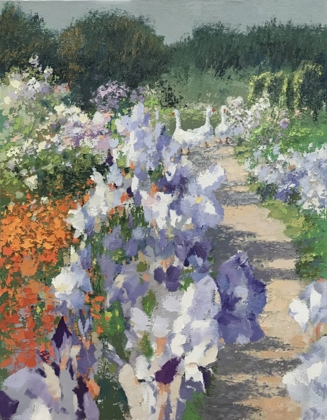 김은정 작가는 자연과 일상의 따뜻한 풍경을 담아내며, 정서적 안정감과 편안한 아름다움을 전하는 작가입니다. 특히 정원 속 꽃들과 거위 가족을 소재로 한 작품들에서는 ‘가족의 화목함’과 ‘조화로운 삶’의 메시지를 회화적으로 표현합니다. 유화의 풍부한 질감과 인상주의적인 색채감으로 시청각적 온기를 자아내며, 평온함과 따스함을 느끼게 합니다. 작품 전체에 흐르는 서정적 정서와 자연에 대한 애정은 김은정 작가의 미적 세계를 섬세하고 풍요롭게 만듭니다.