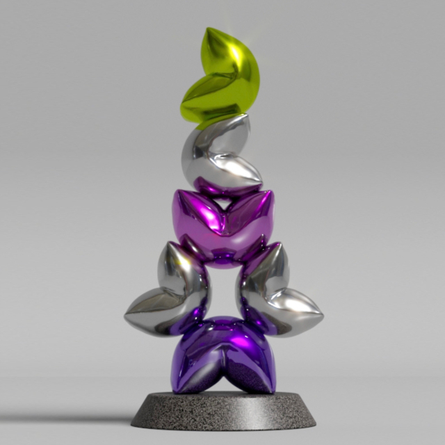 작가는 삶의 여정을 무중력의 행복감이 느껴지도록 푹신한 쿠션, 풍만한 하트, 소파 등 인생의 무게를 완충하는 사물을 통해 표현합니다. 작품을 이룬 금속재질은 심상의 필터로 보면 부유하는 버블처럼 작품에 손을 대면 두둥실 떠오를 것 같아 꿈결을 유영하는 힐링을, 어부바 하듯 서로를 지탱하는 형상은 심리적 위안을 줍니다. 쿠션중앙에 생긴 주름으로 인해 쿠션에서 입술, 꽃잎, 포춘 쿠키 등 다양한 연상으로 뻗어갑니다.