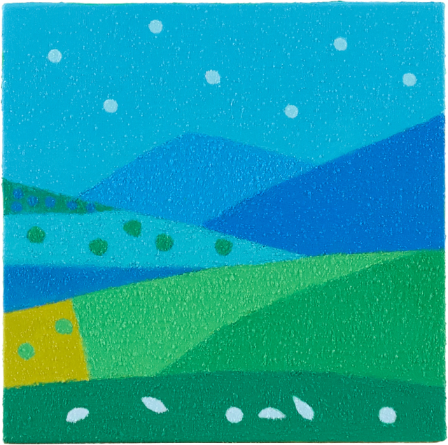 '흐르는 산'을 그리는 김윤숙 작가는 눈에 보여지기 위한 것이 아닌 내면의 세계를 표출해내며 산의 포근함과 신비로움을 화폭에 담아내고 있다. 작품은 단순화되거나 다양한 색채와 압축된 이미지로 변형, 재해석하고 있다. 물감에 돌가루가 섞여 중첩되고 두터워지는 것은 산에 대한 즐거움과 반가움, 경외하는 마음이 녹아 들어가는 과정이다. '거대하고 위대한 자연. 언제든 가기만 하면 품어주고 위로해주며 멀리서도 항상 손짓하는 산. 나에게는 영원한 예술의 화두다.