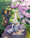 김은정 작가는 자연과 일상의 따뜻한 풍경을 담아내며, 정서적 안정감과 편안한 아름다움을 전하는 작가입니다. 특히 정원 속 꽃들과 거위 가족을 소재로 한 작품들에서는 ‘가족의 화목함’과 ‘조화로운 삶’의 메시지를 회화적으로 표현합니다. 유화의 풍부한 질감과 인상주의적인 색채감으로 시청각적 온기를 자아내며, 평온함과 따스함을 느끼게 합니다. 작품 전체에 흐르는 서정적 정서와 자연에 대한 애정은 김은정 작가의 미적 세계를 섬세하고 풍요롭게 만듭니다.