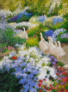 김은정 작가는 자연과 일상의 따뜻한 풍경을 담아내며, 정서적 안정감과 편안한 아름다움을 전하는 작가입니다. 특히 정원 속 꽃들과 거위 가족을 소재로 한 작품들에서는 ‘가족의 화목함’과 ‘조화로운 삶’의 메시지를 회화적으로 표현합니다. 유화의 풍부한 질감과 인상주의적인 색채감으로 시청각적 온기를 자아내며, 평온함과 따스함을 느끼게 합니다. 작품 전체에 흐르는 서정적 정서와 자연에 대한 애정은 김은정 작가의 미적 세계를 섬세하고 풍요롭게 만듭니다.