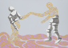 정애란 작가는 '인간과 우주'라는 거대한 담론을 점, 선, 면이라는 가장 기초적인 조형 언어로 풀어내는 기하학적 추상의 탐구자입니다. 작가는 복잡한 현상 너머에 존재하는 사물의 본질을 찾기 위해 불필요한 수사를 걷어내고, 가장 단순한 기하학적 형태로 현대 미니멀리즘의 전형을 보여주며, 철학적 성찰을 추구합니다. 또한 '나는 누구이며, 우리는 어떻게 연결되어 있는가'라는 근원적인 관계의 본질을 파고들며, 서로에게 영향을 주고받는 간극을 좁히고자 노력합니다
