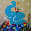 임정아 작가는 행복과 길상의 메시지를 전하는데, 언뜻 상반되어 보이는 두 가지로 요약됩니다. 첫째, 대중에게 가장 사랑받는 <어린 왕자> 시리즈. 생동감 있는 색채와 단순화, 동화적 감수성이 돋보이는 팝아트적 화풍으로 작업합니다. 순수한 어린 왕자와 장미, 별 등 모티브는 현대인에게 순수한 꿈과 희망, 관계의 소중함을 유쾌하게 전달합니다. 둘째, 한국적 정서의 <장락무극(長樂無極)> 시리즈. 행복을 기원하는 길상적 의미 있으며, 현대적으로 재해석합니다.