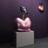 작가는 삶의 여정을 무중력의 행복감이 느껴지도록 푹신한 쿠션, 풍만한 하트, 소파 등 인생의 무게를 완충하는 사물을 통해 표현합니다. 작품을 이룬 금속재질은 심상의 필터로 보면 부유하는 버블처럼 작품에 손을 대면 두둥실 떠오를 것 같아 꿈결을 유영하는 힐링을, 어부바 하듯 서로를 지탱하는 형상은 심리적 위안을 줍니다. 쿠션중앙에 생긴 주름으로 인해 쿠션에서 입술, 꽃잎, 포춘 쿠키 등 다양한 연상으로 뻗어갑니다.