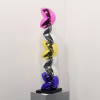 작가는 삶의 여정을 무중력의 행복감이 느껴지도록 푹신한 쿠션, 풍만한 하트, 소파 등 인생의 무게를 완충하는 사물을 통해 표현합니다. 작품을 이룬 금속재질은 심상의 필터로 보면 부유하는 버블처럼 작품에 손을 대면 두둥실 떠오를 것 같아 꿈결을 유영하는 힐링을, 어부바 하듯 서로를 지탱하는 형상은 심리적 위안을 줍니다. 쿠션중앙에 생긴 주름으로 인해 쿠션에서 입술, 꽃잎, 포춘 쿠키 등 다양한 연상으로 뻗어갑니다.