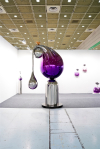 작가는 삶의 여정을 무중력의 행복감이 느껴지도록 푹신한 쿠션, 풍만한 하트, 소파 등 인생의 무게를 완충하는 사물을 통해 표현합니다. 작품을 이룬 금속재질은 심상의 필터로 보면 부유하는 버블처럼 작품에 손을 대면 두둥실 떠오를 것 같아 꿈결을 유영하는 힐링을, 어부바 하듯 서로를 지탱하는 형상은 심리적 위안을 줍니다. 쿠션중앙에 생긴 주름으로 인해 쿠션에서 입술, 꽃잎, 포춘 쿠키 등 다양한 연상으로 뻗어갑니다.