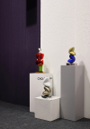 작가는 삶의 여정을 무중력의 행복감이 느껴지도록 푹신한 쿠션, 풍만한 하트, 소파 등 인생의 무게를 완충하는 사물을 통해 표현합니다. 작품을 이룬 금속재질은 심상의 필터로 보면 부유하는 버블처럼 작품에 손을 대면 두둥실 떠오를 것 같아 꿈결을 유영하는 힐링을, 어부바 하듯 서로를 지탱하는 형상은 심리적 위안을 줍니다. 쿠션중앙에 생긴 주름으로 인해 쿠션에서 입술, 꽃잎, 포춘 쿠키 등 다양한 연상으로 뻗어갑니다.