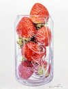 현대인이 추구하는 '달콤한 욕망'을 은유한 김호성 작가의 딸기. 닿는 순간 사라질 것 같은 찰나의 미학을 가장 화려한 색채로 고정해 둠으로써, 인간의 본질적인 갈증과 유혹을 드라마틱하게 보여줍니다. '딸기'는 즉각적인 생기와 활력을 불어넣으며, 붉은색의 심리적 고양감은 보는 이에게 긍정적 에너지를 느끼게 합니다. 정교한 붓질은 기계가 흉내낼 수 없는 화가의 영혼을 담고 있으며, 디지털시대 잃어버린 아날로그적 진정성과 장인 정신에 대한 회귀를 의미합니다.