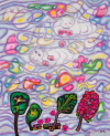 노의웅 화백은 한국 현대 화단에서 ‘구름천사’라는 독보적인 아이콘으로 자신만의 세계를 구축한 거장입니다. 가장 두드러지는 점은 ‘색채의 서정성’과 ‘동화적 판타지’. 작가는 강렬하면서도 따뜻한 원색을 과감하게 사용하여 생명력을 부여하였고, 작품 속 구름은 때로는 포근한 솜사탕처럼, 때로는 천사의 날개처럼 형상화되어 무언의 위로를 건넵니다. 서구적 유화 기법을 따르되, 그 정신적 깊이는 한국적 서정성과 음양의 조화라는 동양적 가치관을 관통하고 있습니다.